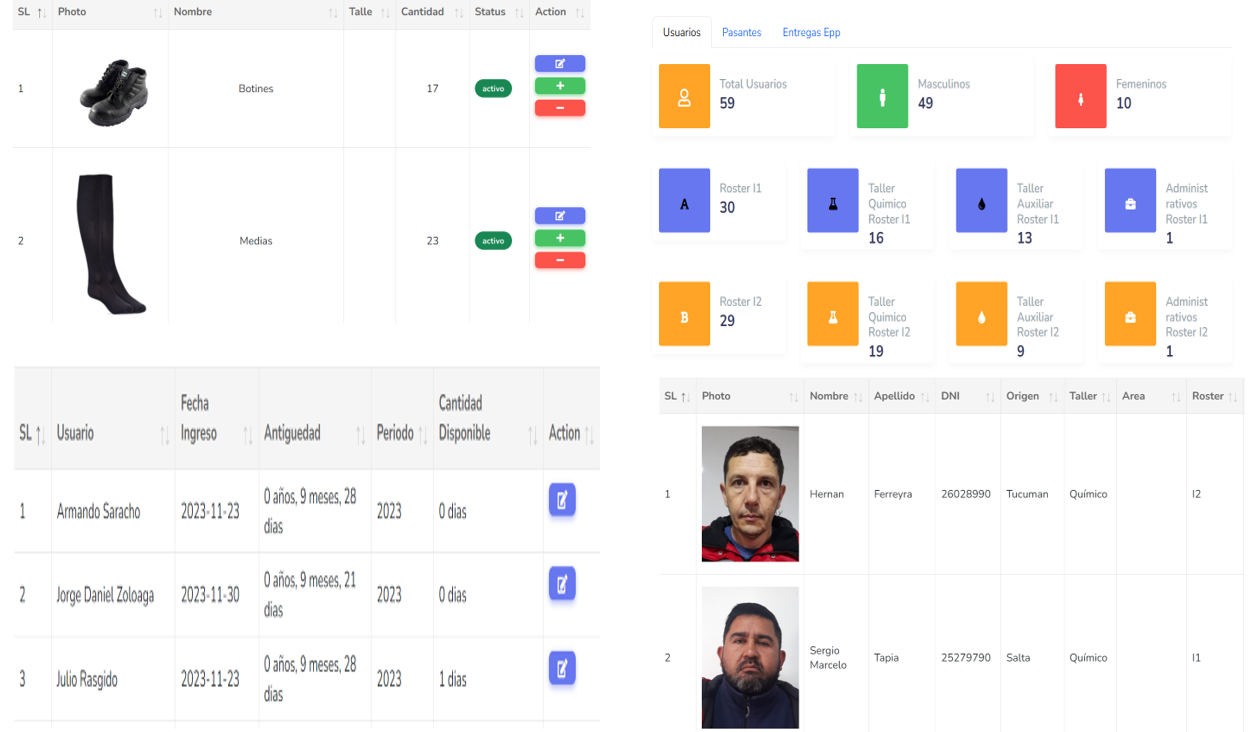 Se diseñan múltiples sistemas para gestionar la producción, EPP's, vacaciones, horas extras, usuarios, y control de stocks.